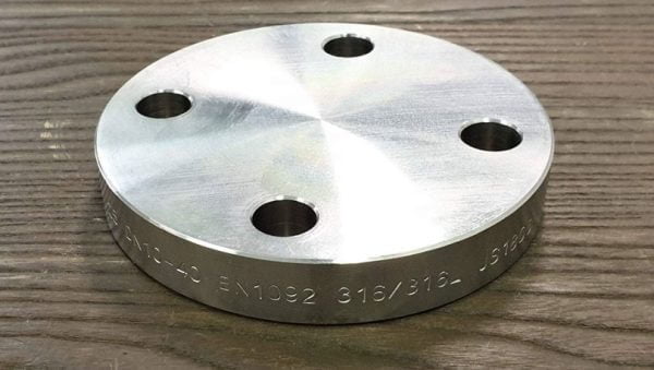 A blind flange is a solid disk used to block off a pipeline or to create a stop. It is machined in the same manner as a regular flange with the mounting holes around the perimeter and the gasket sealing rings machined into the mating surface. The difference is that a blind flange has no opening to allow fluid to pass through. The blind flange can be inserted between two open flanges and used to block off the flow of liquid through a pipeline.